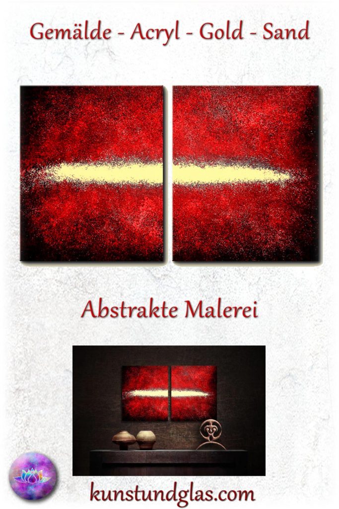 Original Acrylgemälde 2 Bilder mit Goldfarbe, Goldsplitter und Sand.